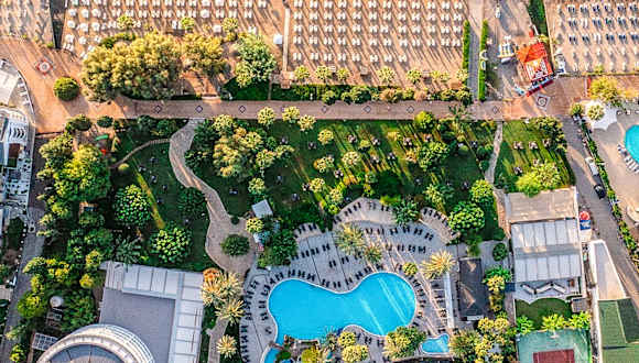 Das Hotel liegt am Rande der idyllischen Hafenstadt direkt am Strand, eingebettet in eine subtropische Gartenlandschaft. Das Stadtzentrum ist ca. 2 km entfernt und bequem zu Fuß über die Strandpromenade zu erreichen. Die faszinierende Landschaft und Umgebung von Marmaris lockt zu spannenden Ausflugstouren. So ist z. B. die griechische Insel Rhodos in nur 50 Minuten mit dem Schiff zu erreichen.