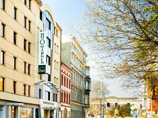 Das Duet ist ein gemütliches und freundliches Hotel in hervorragender Lage im Zentrum von Breslau. Die Rezeption ist rund um die Uhr besetzt. Zu den Einrichtungen des Hauses gehören eine Garderobe, eine Gepäckaufbewahrung und ein Safe. Zudem stehen ein Zeitungskiosk, ein Aufzug und rollstuhlgerechte Einrichtungen zur Verfügung. Das Hotel bietet kostenfreies WLAN im öffentlichen Bereich und stellt Hilfestellung bei der Buchung von Ausflügen am Tourdesk bereit. Der Parkplatz ist 40 m entfernt und kann gegen Gebühr genutzt werden.