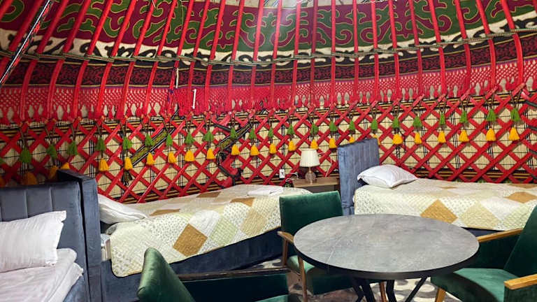 Die Turan Handmade Yurt with Heated Floors bietet ein einzigartiges Übernachtungserlebnis in einer handgefertigten Jurte mit beheizten Böden. Die Unterkunft ist mit einem Garten, einer Terrasse und Grillmöglichkeiten ausgestattet. Gästebetreuer stehen rund um die Uhr zur Verfügung und sprechen Englisch und Russisch.