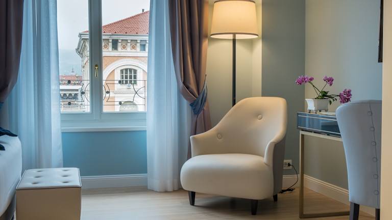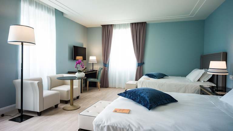 Das Hotel befindet sich im Norden von Turin, etwa 500 m vom Stadtzentrum entfernt. Es besteht eine gute Anbindung an das öffentliche Verkehrsnetz, welche nach ca. 2 km erreichbar ist. Die Entfernung zum Flughafen beträgt ca. 1 km, während der Bahnhof nur 5 m entfernt liegt. Golfplatz und Skipisten sind ebenfalls in der Nähe.