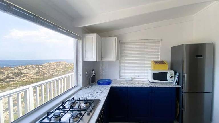 Die Unterkunft Turtle Creek befindet sich in Pringle Bay, eine malerische Gegend mit Möglichkeiten für Wandern und Velofahren. Der nahegelegene Strandbereich und die Terrasse bieten eine einladende Aussicht auf das Meer.
