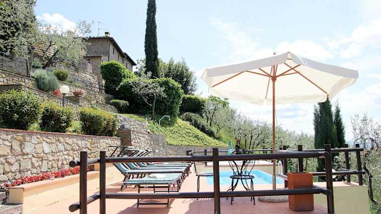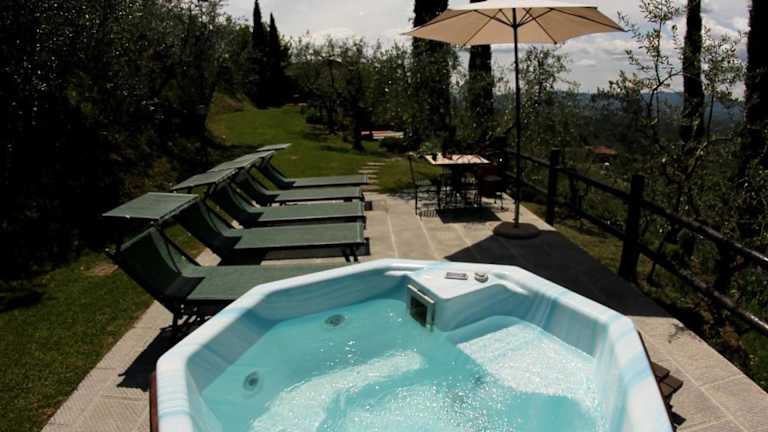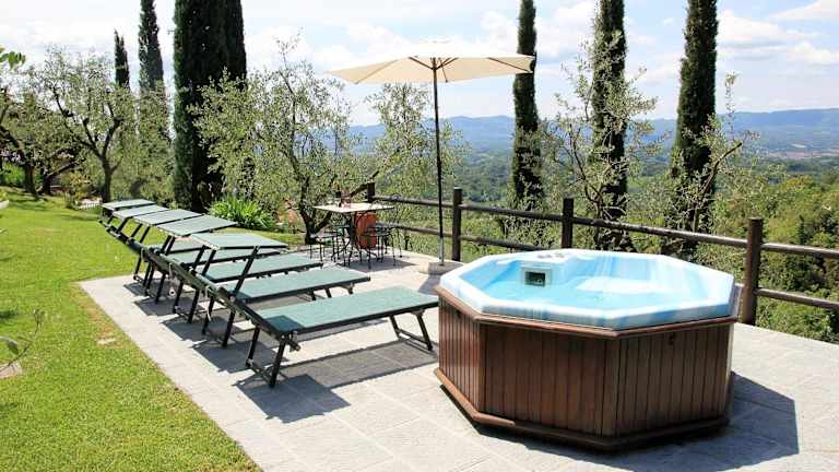 Die Tuscany Villa Chianti Hills - Villa Oliveta liegt malerisch in den Chianti Hügeln und bietet einen herrlichen Blick auf die umgebende Berglandschaft. In der Nähe befinden sich zahlreiche Wander- und Velowege, ideal für Naturliebhaber und sportlich Aktive. Die Villa ist rund 26 Kilometer vom Luxus-Outlet-Center The Mall und etwa 34 Kilometer von der Piazza Grande entfernt. Der nächstgelegene Flughafen, der Flughafen Florenz, befindet sich in einer Entfernung von 64 Kilometern.