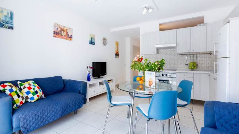 Das Two bedrooms apartment in Costa Adeje bietet Übernachtungsmöglichkeiten in einer angenehmen und heimeligen Ferienwohnung. Zur Ausstattung gehören eine grosse Terrasse, ein eigener Pool sowie ein Aussenpool, der ganzjährig nutzbar ist. Es gibt zudem Grillmöglichkeiten. Die Unterkunft ist eine Nichtraucherunterkunft und für Familien geeignet.