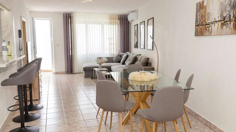 Die Two Identical Designer 2BD Flats mit Meerblick in Balchik bieten insgesamt zwei identische Designwohnungen. Die Unterkünfte verfügen über ein gemütliches Ambiente, einen Garten und eine Terrasse, die die Bequemlichkeit erhöhen. Die Unterkunft ermöglicht eine Ankunft zwischen 15:00 und 00:00 Uhr und einen Check-out bis 12:00 Uhr. Junggesellenabschiede oder ähnliche Feiern sind nicht erlaubt.