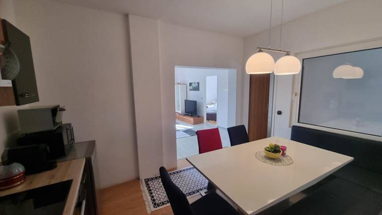 Die Ferienwohnung besteht aus 2 Schlafzimmern, einem Wohnzimmer, einer voll ausgestatteten Küche mit Kühlschrank und Kaffeemaschine sowie einem Badezimmer mit Dusche. Handtücher und Bettwäsche werden zur Verfügung gestellt.