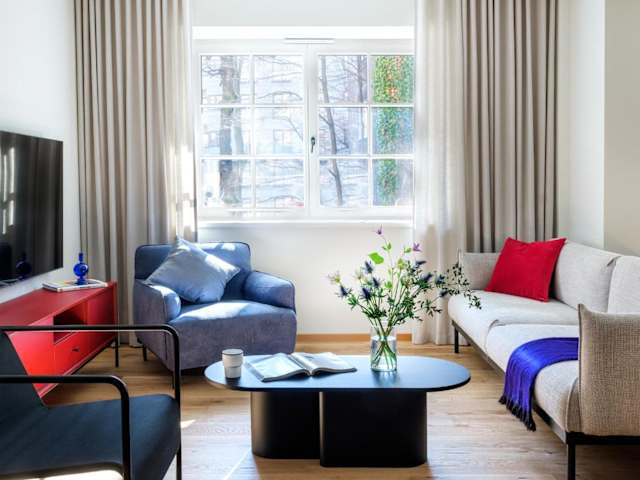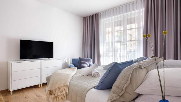 Die Wohneinheiten sind mit einem Satelliten Flachbild-TV, Sitzplätzen und einer gut ausgestatteten Küchenzeile versehen. Jedes eigene Badezimmer ist mit einer Dusche, kostenlosen Pflegeprodukten und einem Haartrockner ausgestattet. Des Weiteren gibt es einen Kühlschrank, einen Geschirrspüler, einen Ofen sowie einen Wasserkocher.