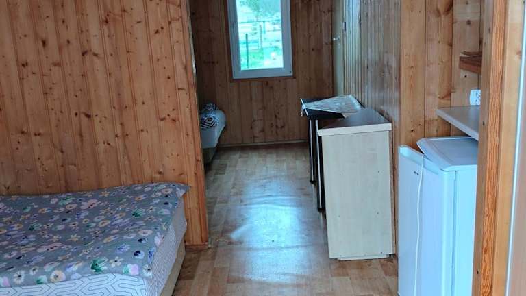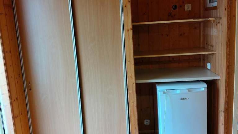 In der Unterkunft gibt es einen Kühlschrank sowie einen Wasserkocher für die Zubereitung von Getränken und kleinen Snacks.