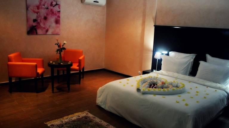 Die modernen, schallisolierten Zimmer sind mit einem LCD-Sat-TV und einem Telefon ausgestattet. Jedes Zimmer hat ein eigenes Bad und bietet eine Aussicht auf die Strassen von Rabat. Allergikerfreundliche Zimmer sind ebenfalls verfügbar.