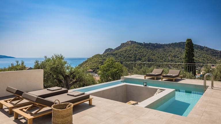 Uberina - Olea Di Assos Villas ist eine Villa, die über eine Veranda / Patio, einen eigenen Pool, einen Garten und einen Grill verfügt. Kostenloses Wifi und eine kostenlose Parkiermöglichkeit sind ebenfalls vorhanden. Die Villa ist klimatisiert und bietet direkten Zugang zu einem Balkon mit Poolblick.