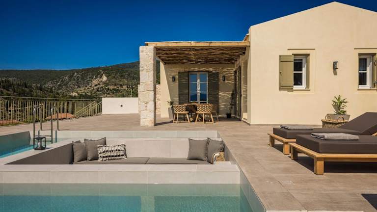 Die Unterkunft Uberina - Olea Di Assos Villas liegt in Asos, in der Region Ionische Inseln, nur 400 m vom Strand Assos entfernt. Der Hafen Fiskardo ist 20 km entfernt und der nächstgelegene Flughafen ist der Flughafen Kefalonia, welcher sich in 43 km Entfernung befindet.