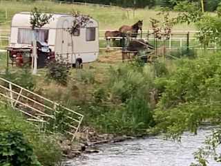 Die Unterkunft enthält einen Karavan mit einem voll ausgestatteten eigenen Badezimmer, das über eine Dusche und einen Haartrockner verfügt. Der Garten und die Terrasse bieten zusätzliche Möglichkeiten zum Entspannen.