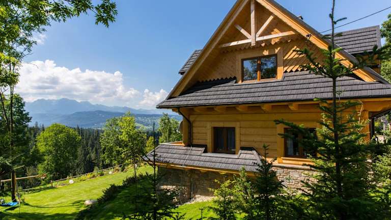 udanypobyt Dom Forest Prestige House ist eine Villa mit 6 Schlafzimmern und 5 Badezimmern, ausgestattet mit einem Flachbild-TV, Essbereich, voll ausgestatteter Küchenzeile, Balkon und Terrasse mit Blick auf die Berge. Es gibt einen Garten und kostenloses WLAN. Ein Privatparkplatz ist ebenfalls verfügbar.
