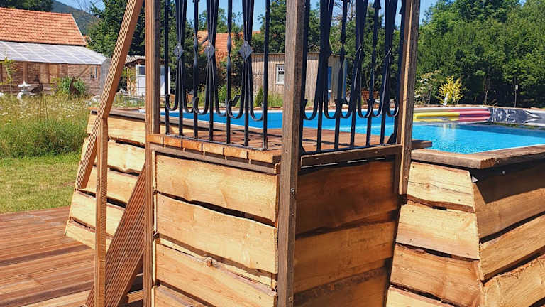 Die Unterkunft übernachtung in unserem Wohnwagen bietet Übernachtungsmöglichkeiten in einem Wohnwagen und zeichnet sich durch einheimelige Atmosphäre aus. Sie wird von einem privaten Gastgeber geführt. Es gibt einen saisonalen Aussenpool sowie eine Terrasse und einen Garten zur Erholung.