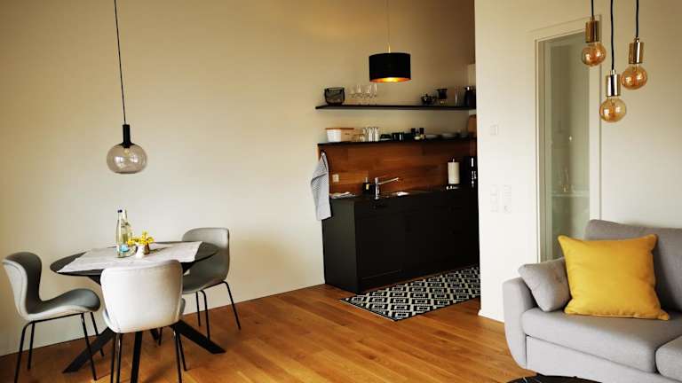 Die Unterkunft bietet komfortable Zimmer mit Bergblick. Die Zimmer sind ausgestattet mit einem Sitzbereich, einem Kabel-Flachbild-TV und einer voll ausgestatteten Küche, die einen Kühlschrank und einen Geschirrspüler umfasst. Jedes Zimmer verfügt über ein eigenes Badezimmer mit Dusche, Haartrockner sowie Bademänteln. Zu den weiteren Annehmlichkeiten gehören allergikerfreundliche Zimmer sowie Bettwäsche und Handtücher, die nach behördlichen Vorgaben gewaschen werden.