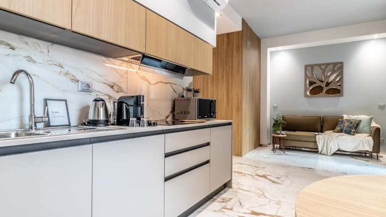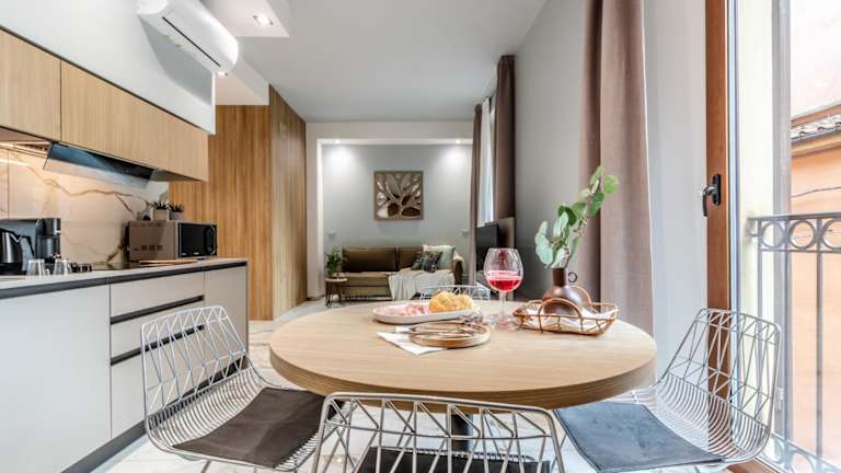 Die Apartments sind klimatisiert und bieten eine moderne und komfortable Unterkunft. Jedes Apartment verfügt über einen Flachbild-TV und ein eigenes Badezimmer mit Bidet, Dusche und kostenlosen Pflegeprodukten. Die Küche ist komplett ausgestattet mit einem Kühlschrank, einem Geschirrspüler, einer Mikrowelle, einem Kochfeld, einer Kaffeemaschine und einem Wasserkocher. So können die Gäste ihre eigenen Mahlzeiten zubereiten und sich wie zu Hause fühlen.
