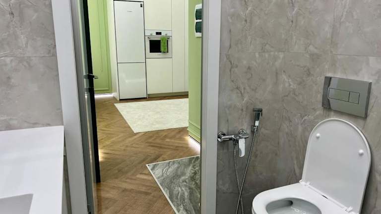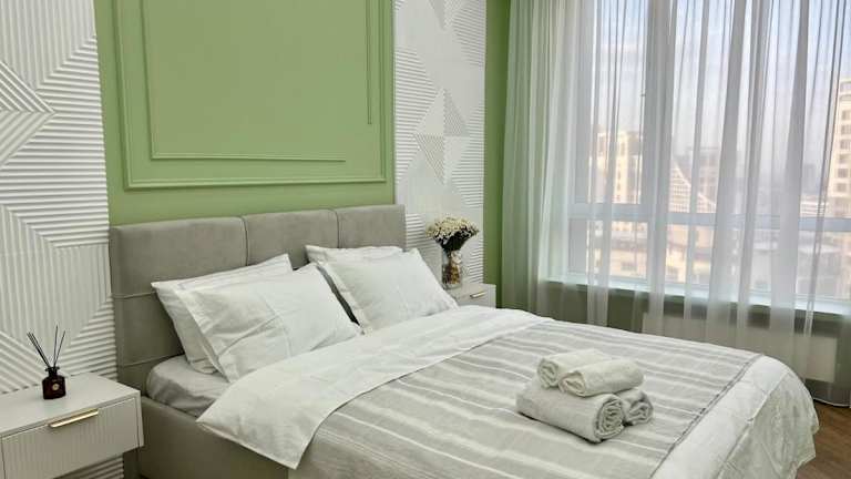 Die Unterkunft befindet sich in Zhezdi, im 18. Stock eines Gebäudes, was einen Ausblick auf die Stadt bietet.