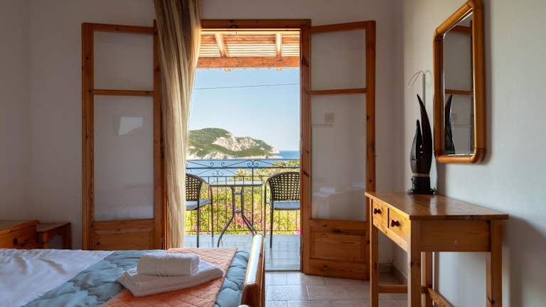 Alle Wohneinheiten sind mit einem Balkon ausgestattet, der einen wunderschönen Meerblick bietet. Jedes Zimmer verfügt über eine Küche mit Kühlschrank und Herdplatte sowie ein eigenes Badezimmer mit Dusche. Auf Wunsch können gegen Aufpreis auch Handtücher und Bettwäsche bereitgestellt werden.