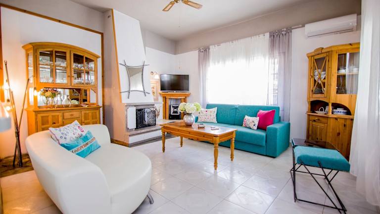 Die Villa umfasst ein Wohnzimmer mit einem TV, eine voll ausgestattete Küche mit Kühlschrank und Ofen sowie zwei Badezimmer mit Haartrockner. Handtücher und Bettwäsche werden bereitgestellt. Der Check-in ist ab 16:00 Uhr und der Check-out bis 12:00 Uhr möglich. Das Mindestalter für den Check-in ist 18 Jahre.