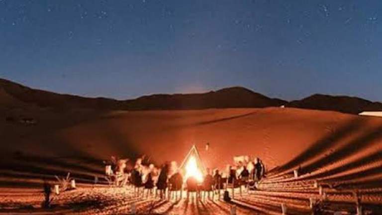 Das Desert Nights Camp liegt in der faszinierenden Wüstenlandschaft von Merzouga. Genießen Sie die einzigartige Erfahrung, inmitten der atemberaubenden Sanddünen zu übernachten. Der nächstgelegene Flughafen Moulay Ali Cherif ist etwa 138 km entfernt, und die Unterkunft bietet einen kostenlosen Flughafentransfer, um Ihre Anreise so bequem wie möglich zu gestalten.