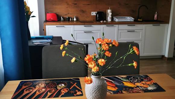 Die Ferienwohnung verfügt über ein Schlafzimmer, ein Wohnzimmer sowie eine gut ausgestattete Küche mit Kühlschrank und Herdplatte. Zudem sind ein Flachbild-TV, ein Badezimmer mit Dusche sowie Handtücher und Bettwäsche vorhanden.