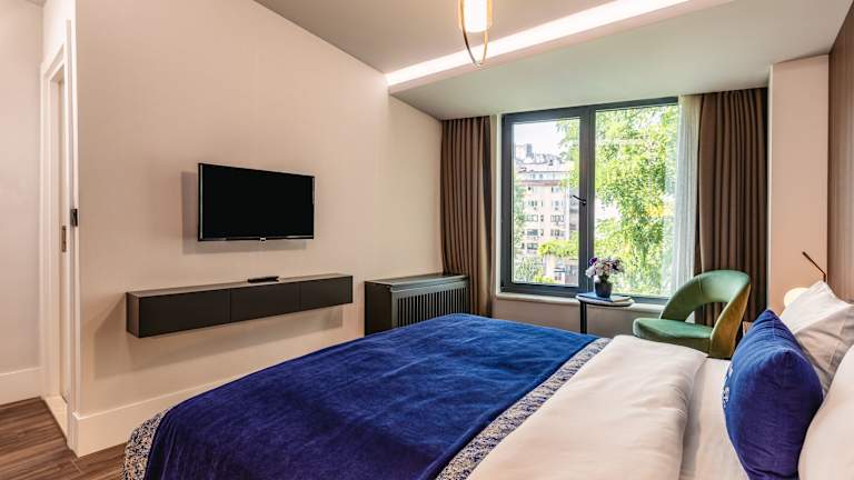 Alle Gästezimmer sind mit Klimaanlage, einem Flachbild-TV mit Satellitenkanälen, einer Minibar, einem Wasserkocher und einer Dusche ausgestattet. Die Zimmer verfügen über kostenlose Pflegeprodukte und einen Kleiderschrank. Jedes Zimmer ist mit einem Safe ausgestattet, einige Zimmer bieten eine Terrasse und/oder einen Stadtblick. Bettwäsche und Handtücher sind vorhanden.