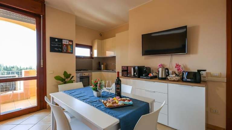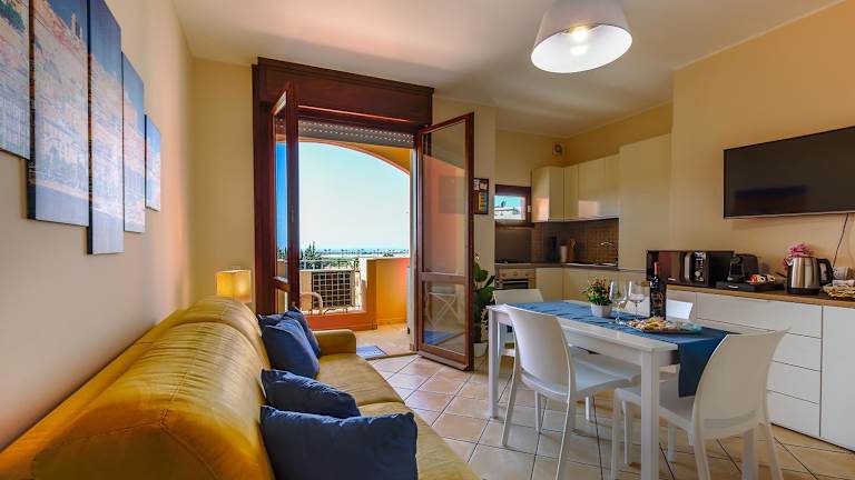Die Unterkunft beinhaltet eine Klimaanlage und besteht aus einem Schlafzimmer, einem Wohnzimmer, einer voll ausgestatteten Küchenzeile mit Kühlschrank und Kaffeemaschine sowie einem Badezimmer mit Bidet und Dusche. Handtücher und Bettwäsche werden bereitgestellt. Ein Balkon ermöglicht es, die Aussicht zu geniessen.