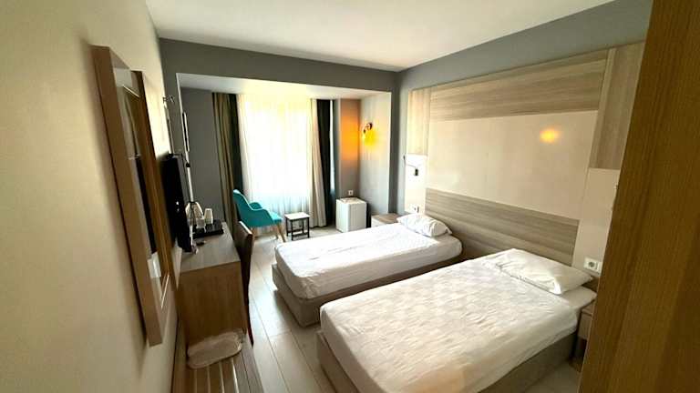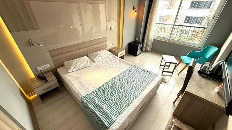 Das Hotel befindet sich in Antalya, direkt am Strand, nur etwa 100 m vom Flughafen entfernt. Das Stadtzentrum ist rund 8 km und der Golfplatz ca. 43,5 km entfernt.