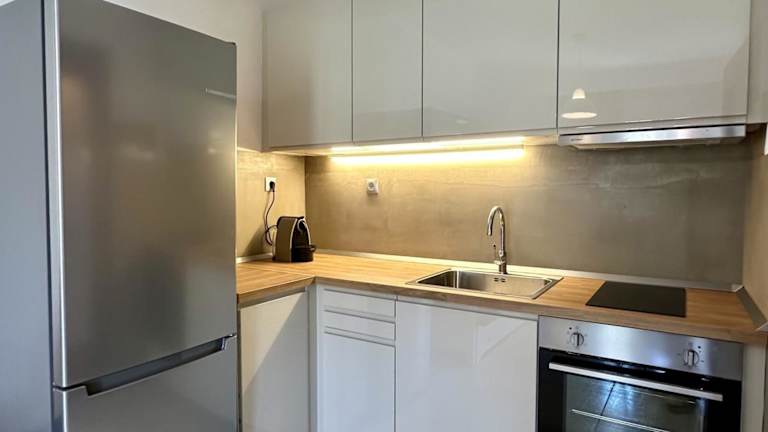 Die Ferienwohnung bietet 2 Schlafzimmer, ein Badezimmer, Bettwäsche und Handtücher. Zur Ausstattung gehören ein Flachbild-TV, ein Essbereich und eine voll ausgestattete Küche. Ein Balkon mit Meerblick steht ebenfalls zur Verfügung. Ein Kinderspielplatz ist vorhanden.