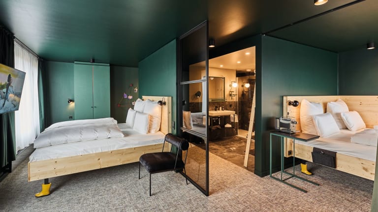 90 helle Zimmer und Suiten mit großen Fenstern, komfortabler Einrichtung – einige davon mit Terrasse
