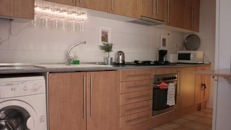 Die Ferienwohnung verfügt über ein Schlafzimmer sowie ein Badezimmer mit Dusche, Badewanne und Haartrockner. Die Küche ist mit einem Kühlschrank, einem Ofen und einem Toaster ausgestattet. Die Unterkunft ist klimatisiert und bietet Gartenmöbel. Das Apartment befindet sich im 6. Stock, es gibt keinen Lift.
