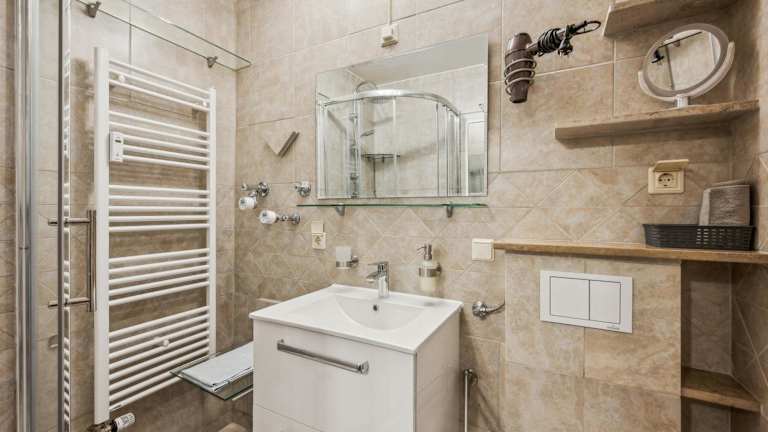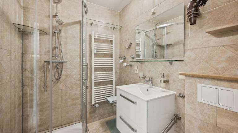 Das Apartment bietet ein komfortables Schlafzimmer, eine voll ausgestattete Küche mit Kühlschrank und Geschirrspüler sowie ein modernes Badezimmer mit Dusche. Der gemütliche Sitzbereich lädt zum Entspannen ein und der Flachbild-TV sorgt für Unterhaltung. Handtücher und Bettwäsche werden Ihnen zur Verfügung gestellt, um Ihren Aufenthalt noch angenehmer zu gestalten.