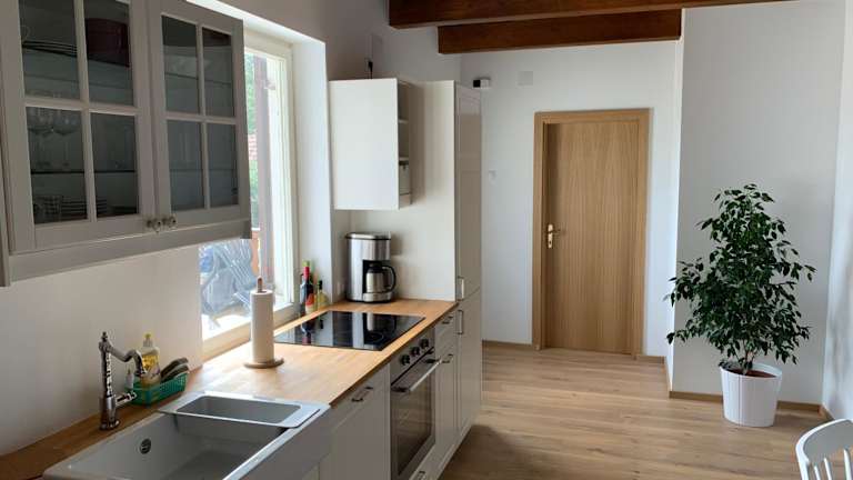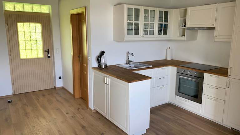 Die Unterkunft bietet eine voll ausgestattete Küche mit Kühlschrank, Ofen, Herdplatte, Kaffeemaschine und Wasserkocher, um die Selbstverpflegung zu ermöglichen.