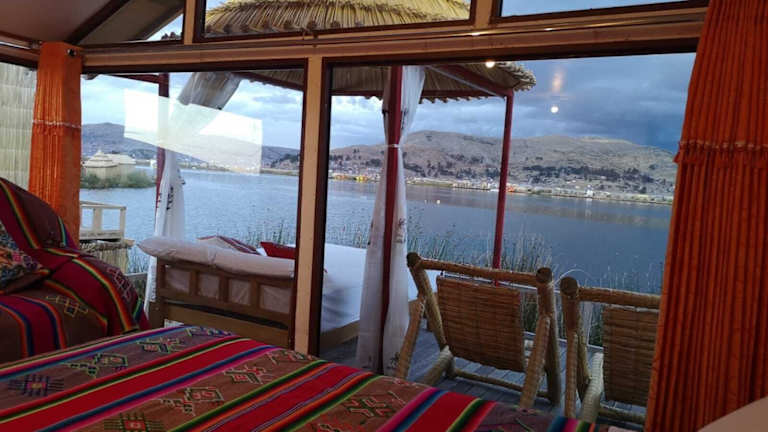 Die Uros Samaraña Uta Lodge in Puno bietet Ihnen einen einzigartigen Aufenthalt auf dem Titicaca-See. Genießen Sie die atemberaubende Bergkulisse von der Sonnenterrasse aus und lassen Sie sich von der All-inclusive-Verpflegung verwöhnen. Die Unterkünfte sind gemütlich eingerichtet und bieten alles, was Sie für einen komfortablen Aufenthalt benötigen. Freuen Sie sich auf zahlreiche Aktivitäten wie Angeln, Ausflüge in traditionellen Totora-Booten und das Sammeln von Eiern. Der freundliche Service und die kostenlose Transferservice machen Ihren Aufenthalt noch angenehmer.