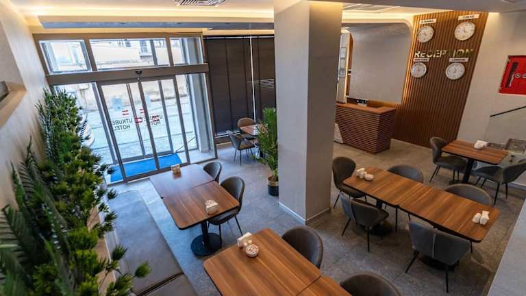 Das Utkubey Hotel hat ein freundliches Personal an der Rezeption, das gerne bei Fragen behilflich ist. Zur Einrichtung zählen eine Gepäckaufbewahrung, ein Safe sowie eine Wechselstube. WLAN steht in den öffentlichen Bereichen zur Verfügung. Das Hotel verfügt über rollstuhlgerechte Einrichtungen, einen Aufzug und einen TV-Raum. Für Gäste, die mit dem Auto anreisen, gibt es sowohl ein Parkhaus als auch Parkiermöglichkeiten ohne Gebühr.