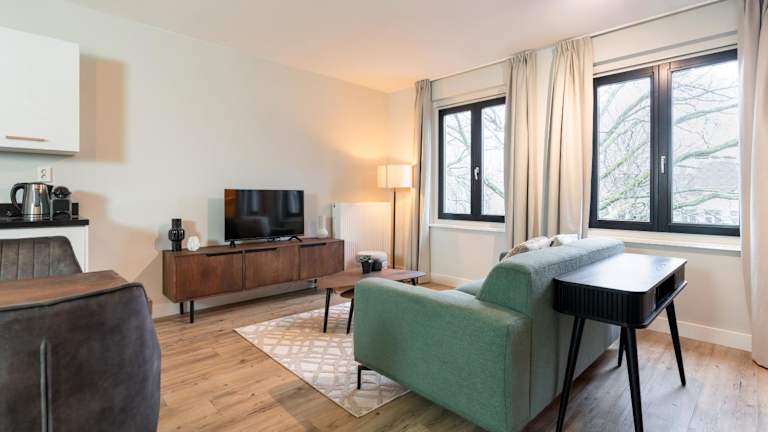 Die Wohneinheiten umfassen ein Wohn-/Schlafzimmer mit einer modernen Küche, die unter anderem mit einem Geschirrspüler, Backofen, Mikrowelle, Kühlschrank, Kaffeemaschine und Wasserkocher ausgestattet ist. Jede Einheit besitzt ein eigenes Bad mit einem Haartrockner. Handtücher und Bettwäsche sind vorhanden, Waschmaschinen und Trockner stehen im Keller gegen Aufpreis zur Verfügung.