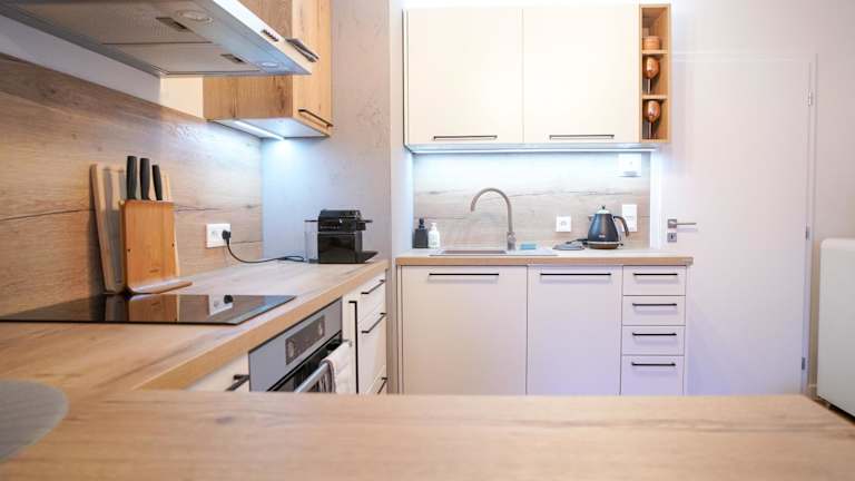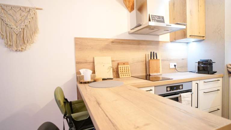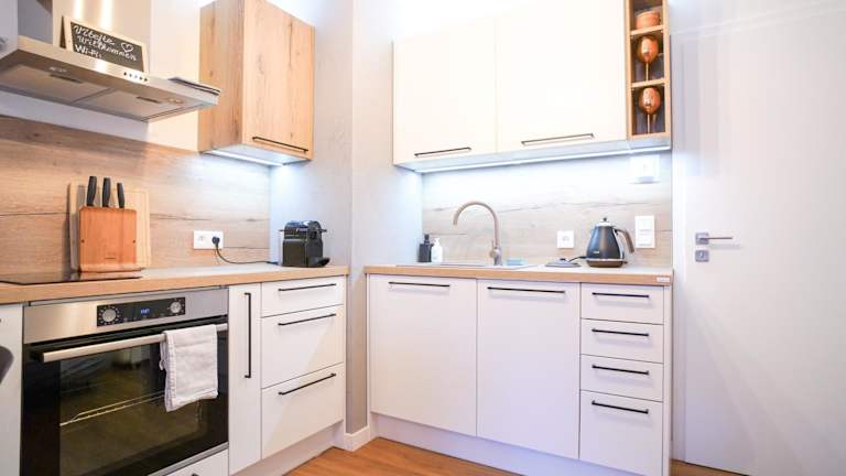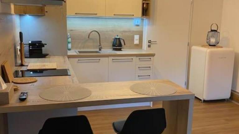 Die Ferienwohnung besteht aus einem Schlafzimmer, einem Wohnzimmer und einer voll ausgestatteten Küche mit Kühlschrank und Kaffeemaschine. Des Weiteren bietet sie ein Badezimmer mit Dusche und kostenlosen Pflegeprodukten. Handtücher und Bettwäsche werden bereitgestellt.