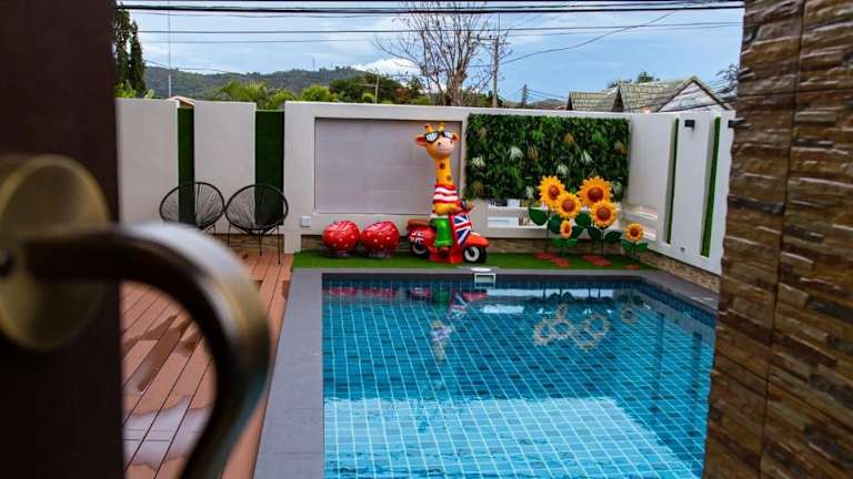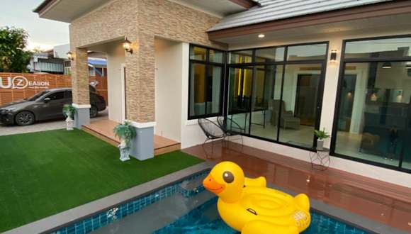 Die Uzeason Poolvilla Sattahip bietet eine heimelige Atmosphäre mit einem eigenen Pool und einem Garten. Zu den Annehmlichkeiten gehören eine Terrasse und eine Gemeinschaftslounge. Das Hotel ist Nichtraucherunterkunft und eignet sich hervorragend für Familien sowie für Gäste, die Ruhe suchen. Die Villa ist klimatisiert.