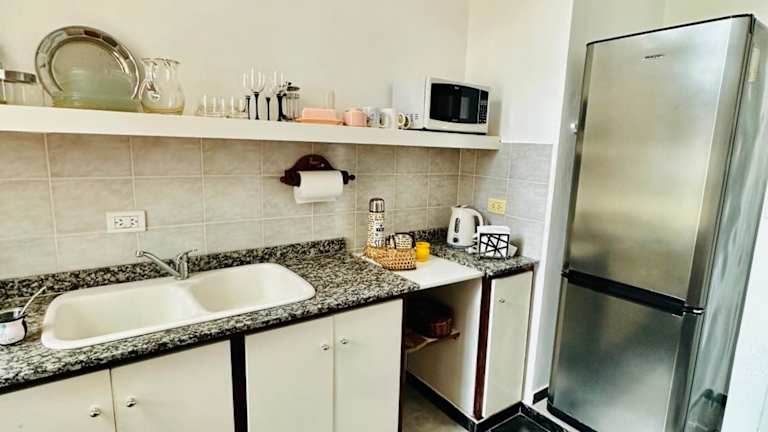 Die Ferienwohnung besteht aus einem Schlafzimmer, einer gut ausgestatteten Küche mit Kühlschrank und Ofen, einem Flachbild-TV, einem Sitzbereich und einem Badezimmer, das mit einem Bidet ausgestattet ist. Handtücher und Bettwäsche werden zur Verfügung gestellt. Alle Bereiche der Unterkunft sind Nichtraucherzonen.