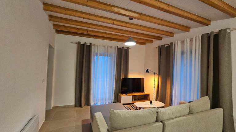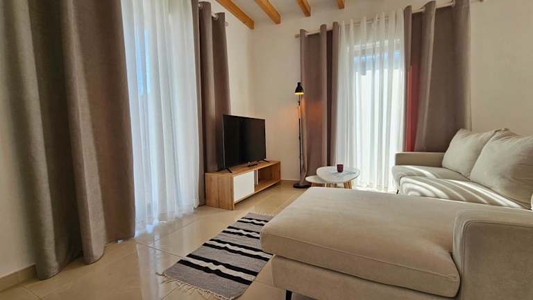Das Ferienhaus beinhaltet 2 Schlafzimmer, ein Wohnzimmer mit Flachbild-TV, eine gut ausgestattete Küche mit Kühlschrank und Geschirrspüler sowie 1 Badezimmer mit Dusche.