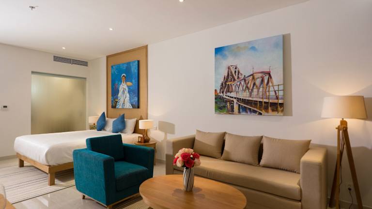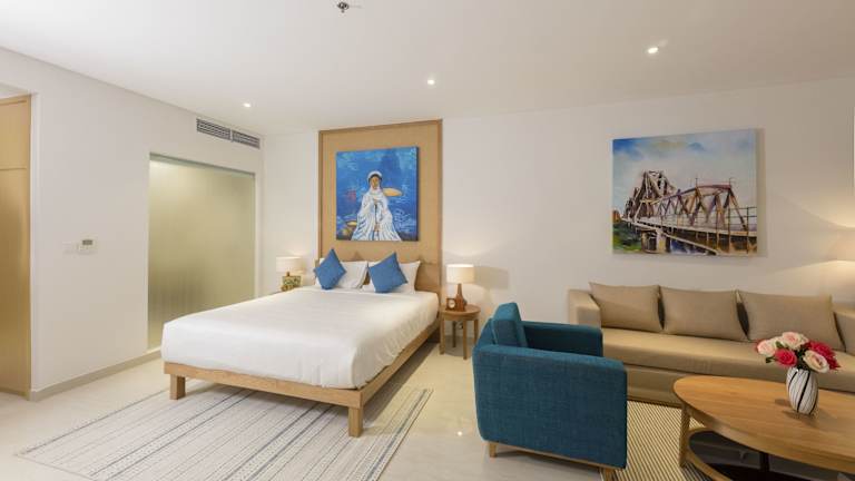 Die klimatisierten Zimmer sind ausgestattet mit einem Schreibtisch, Wasserkocher, Kühlschrank, Mikrowelle, Safe, Flachbild-TV, Terrasse sowie eigenem Badezimmer mit Bidet. Einige Wohneinheiten bieten Gartenblick und alle Zimmer sind mit einem Balkon ausgestattet. Bettwäsche und Handtücher sind vorhanden.