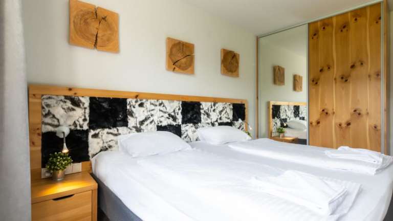 Die Ferienwohnung verfügt über 2 Schlafzimmer, ein Wohnzimmer, einen Flachbild-TV und eine gut ausgestattete Küchenzeile mit Kühlschrank und Geschirrspüler. Ein Badezimmer mit Dusche ist ebenfalls vorhanden. Handtücher und Bettwäsche werden bereitgestellt.