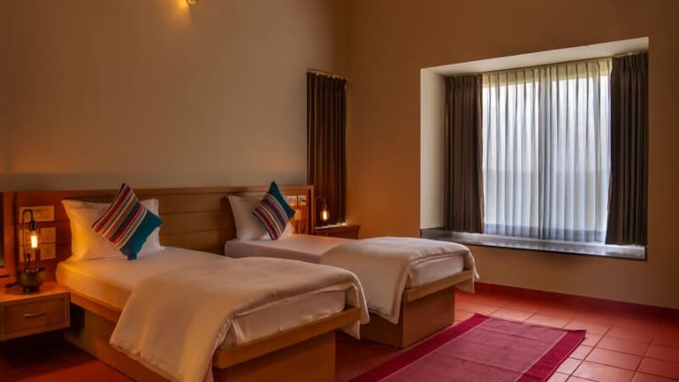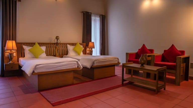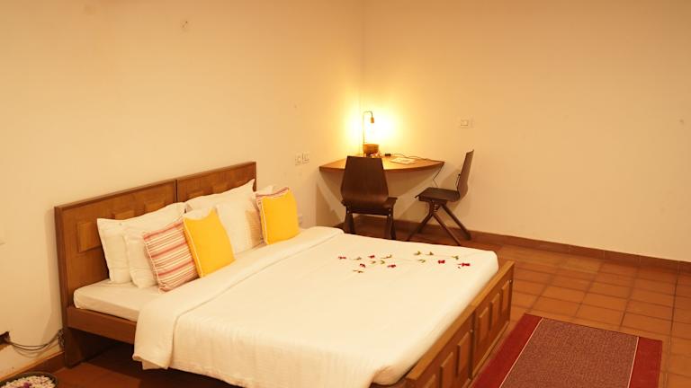 Niraamaya Retreats Vaidekam bietet Übernachtungsmöglichkeiten in einer ruhigen und heimeligen Atmosphäre. Das Hotel verfügt über Annehmlichkeiten wie einen kostenlosen Privatparkplatz, einen Garten und eine Terrasse sowie einen Aussenpool.