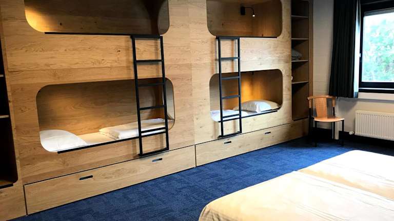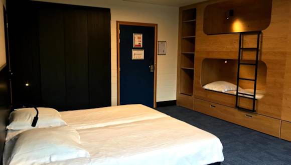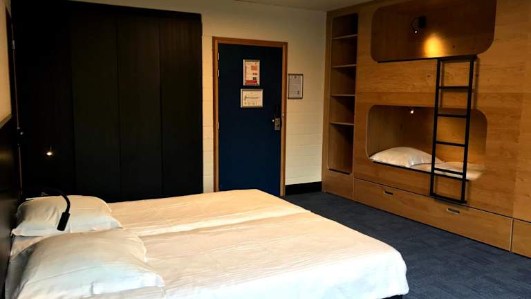 Für die Verpflegung stehen ein Buffet mit speziellen Kindergerichten sowie Möglichkeiten für Snacks zur Verfügung. Es gibt Getränke- und Snackautomaten, und auf Wunsch sind auch Speisen für spezielle Ernährungsbedürfnisse erhältlich. An der Sonnenterrasse können die Gäste entspannen.