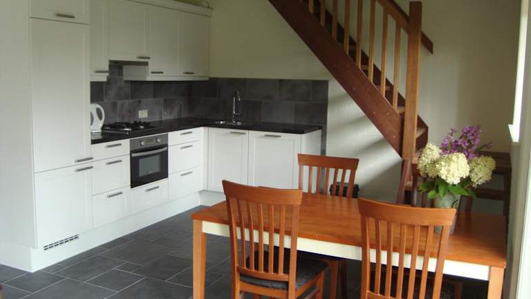 Das Ferienhaus verfügt über 2 Schlafzimmer, 1 Badezimmer sowie eine voll ausgestattete Küche. Zur Ausstattung gehören Bettwäsche, Handtücher, ein Flachbild-TV mit Kabelkanälen und ein Essbereich. Eine Terrasse mit Gartenblick komplettiert das Angebot.