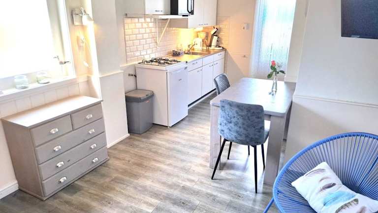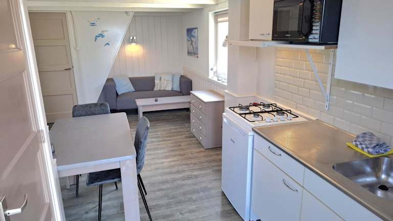 Die Unterkunft Vakantiewoning met terras vlakbij strand en centrum bietet Übernachtungsmöglichkeiten direkt am Strand, ausgestattet mit einem gemütlichen Garten und kostenlosem Wifi. Die Ferienwohnung verfügt über eine Terrasse mit Gartenblick sowie einem Wohnzimmer und einem Flachbild-TV.