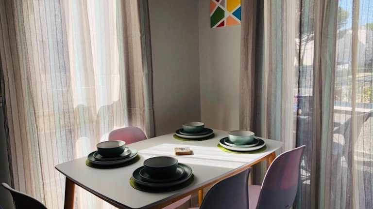 Die Ferienwohnung verfügt über ein Schlafzimmer, ein Wohnzimmer sowie eine voll ausgestattete Küche mit Kühlschrank und Kaffeemaschine. Im Badezimmer befinden sich ein Bidet und eine Dusche. Handtücher und Bettwäsche werden bereitgestellt.