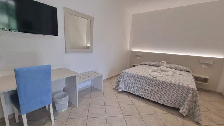 Die klimatisierten Wohneinheiten sind mit Fliesenböden ausgestattet und bieten ein eigenes Badezimmer mit Bidet und Haartrockner. Zudem sind ein Flachbild-TV, ein Schreibtisch, eine ausgestattete Küche und eine Terrasse vorhanden. Von den Zimmern aus geniessen die Gäste den Blick auf das Meer.