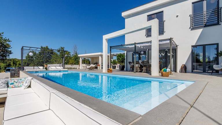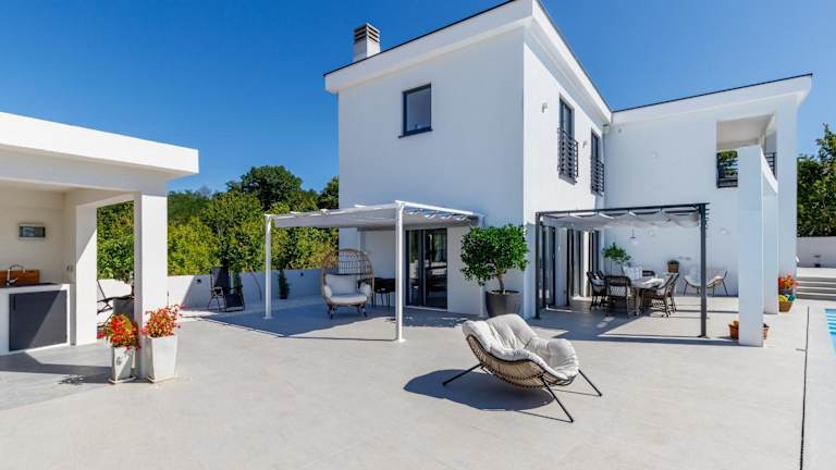 Die Villa umfasst 4 Schlafzimmer und verfügt über Satelliten TV. Zusätzlich bietet die Unterkunft Annehmlichkeiten wie Heizung, Klimaanlage und einen Safe. Kostenfreies WiFi ist in allen Bereichen verfügbar und ein Privatparkplatz steht vor Ort zur Verfügung.