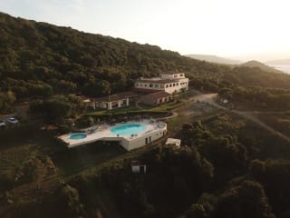 Hotel Relais Valkarana stands on the shores of a lake, Lago del Liscia, a short distance from the famous Costa Smeralda / Porto Cervo and its beautiful beaches. Nestled among oak trees, centuries-old olive groves and scented Mediterranean plants, Hotel Restaurant Valkarana is a genuine oasis of calm and wellbeing. It looks like a typical Gallura farmhouse decorated with hand-crafted granite stones. The hotel has 19 rooms, a bar, a lobby, a restaurant with large verandas, porches, an outdoor swimming pool for adults and children, a garden, private car-parking facilities and private access to the lake.