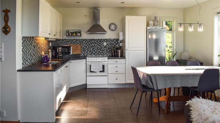Das Ferienhaus Valvik bietet 3 Schlafzimmer und ein Wohnzimmer. Die Küche ist vollständig ausgestattet mit einem Kühlschrank und einem Geschirrspüler.